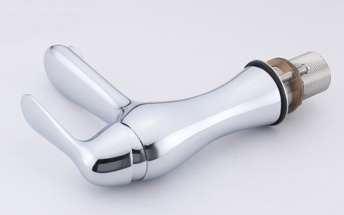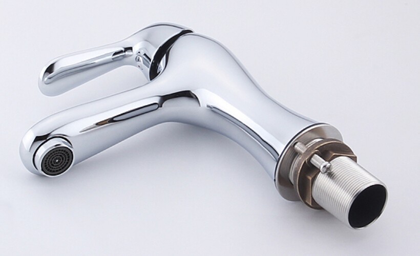 Free shipping Brass Single Hole brass chrome Bathroom Faucet Basin Faucets Hot and Cold Water Mixer Tap+2 pcs Hoses BF099